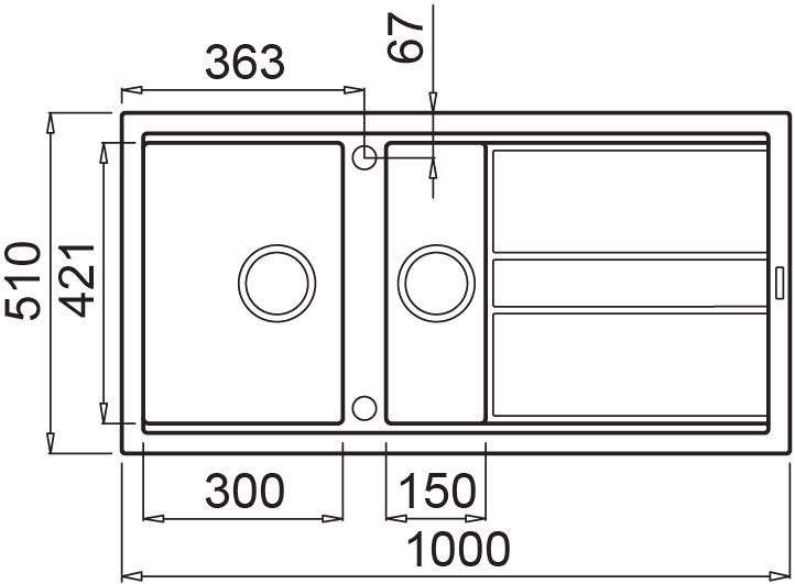 Размер мойки | 1000 x 510 мм |